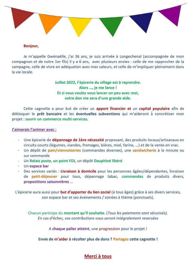Nous encourageons la réouverture de l'épicerie, coeur du vie du village et lieu de convivialité. Courage ! Merci !
