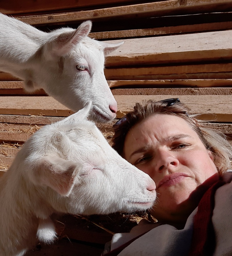 Passionnée par la nature, l'environnement et les animaux, je suis merveilleusement entourée de 7 poilus : Fanzy et Glue mes 2 chiens staffis, Clé de 13 et Ragnar mes 2 minou-chats, Socrate et Shrek mes 2 chèvres, protagonistes de ce projet et Tom mon amoureux.