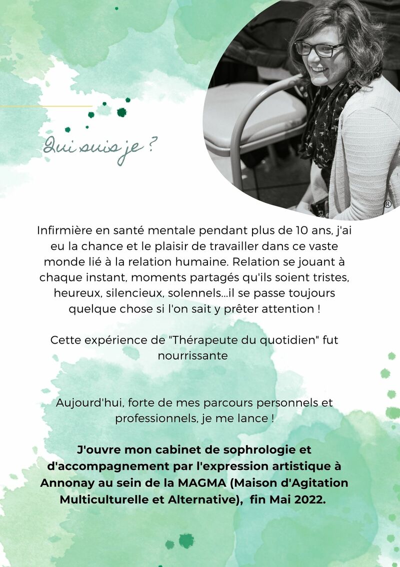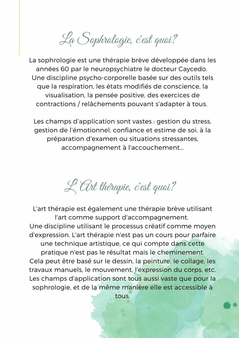 - Me former afin d'apporter l'accompagnement adéquat. Un accompagnement personnalisé favorisant un espace de co-création dans une approche intégrative du soin (c'est à dire prenant en compte tous les aspects de l'être humain : physique, mentale, émotionnel, spirituel, relationnel)