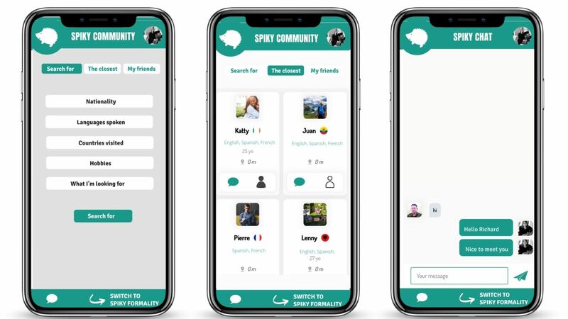 Une fois les besoins essentiels comblés (logement, santé…), les nouveaux arrivants ont besoin de créer du lien, soit avec une personne de la même culture, ou parlant la même langue, soit avec des personnes françaises proches de chez elles. Spiky souhaite donc développer une plateforme communautaire où il est possible de rechercher et entrer en contact avec des utilisateurs à proximité en fonction de critères bien précis : la nationalité, la langue, les pays visités, les hobbies ...